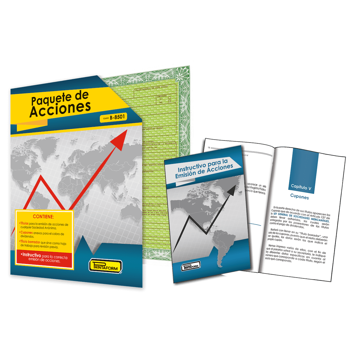 Printaform pone a tu alcance el paquete de acciones con una excelente calidad de papel e impresión.
