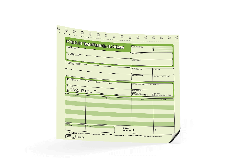 Printaform pone a tu alcance la póliza de transferencia bancaria con carbón intercalado, única en el mercado.