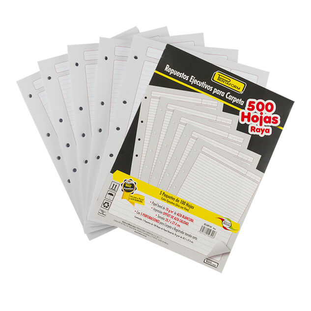En Printaform contamos con repuestos de hojas para complementar los atractivos diseños de tus carpetas.